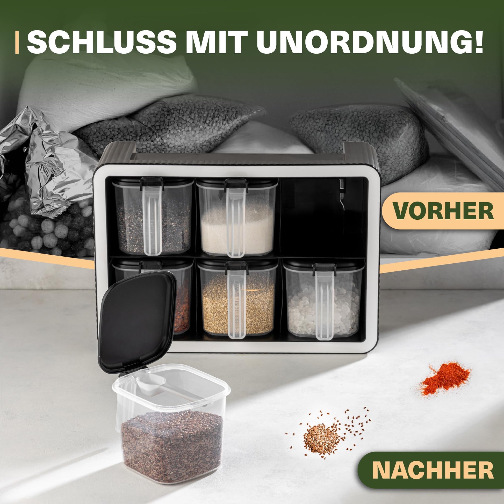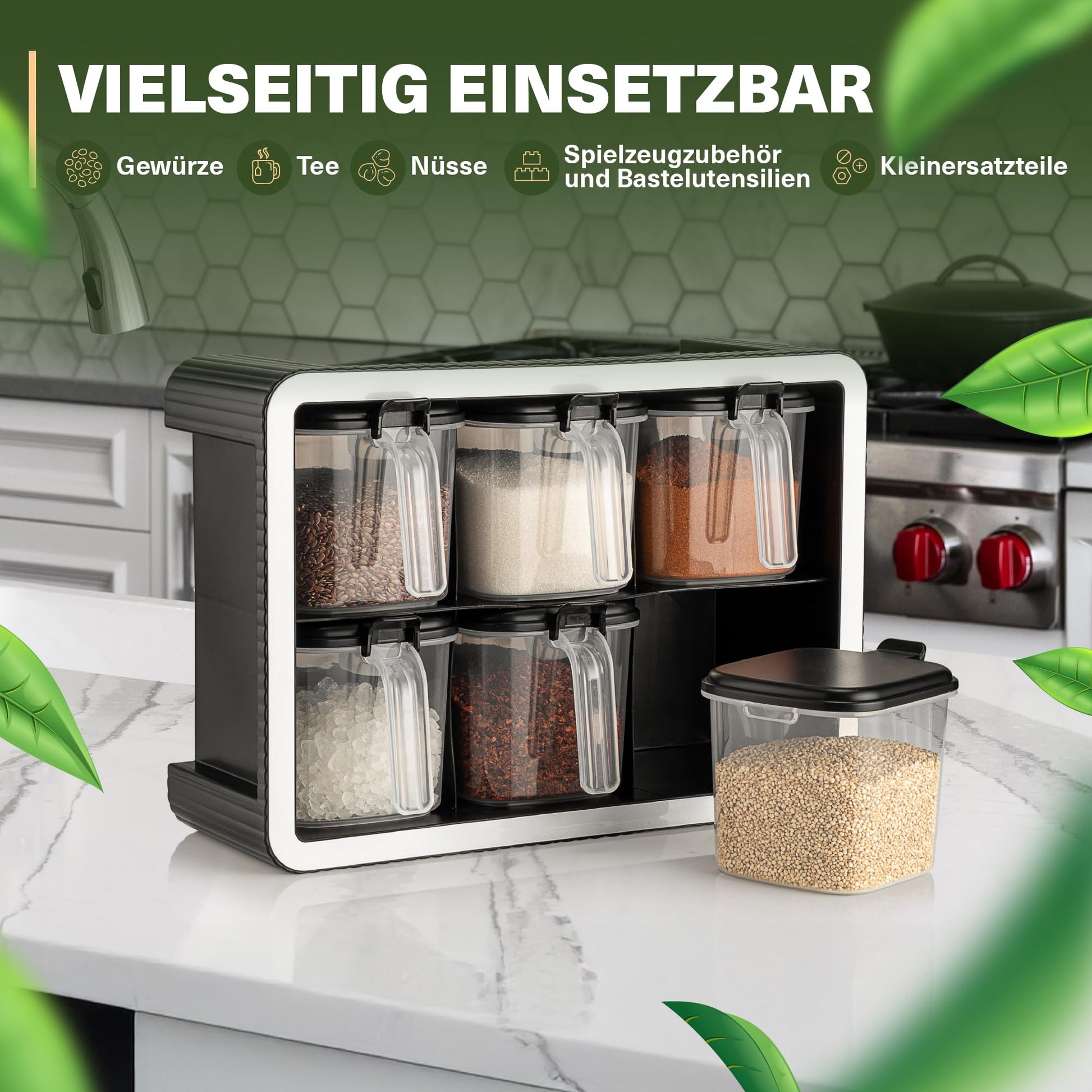 Perfekt geeignet für Gewürze, Tee, Nüsse oder sogar kleine Gegenstände im Kinderzimmer – ein funktionales Set, das sich in jedem Raum gut macht.