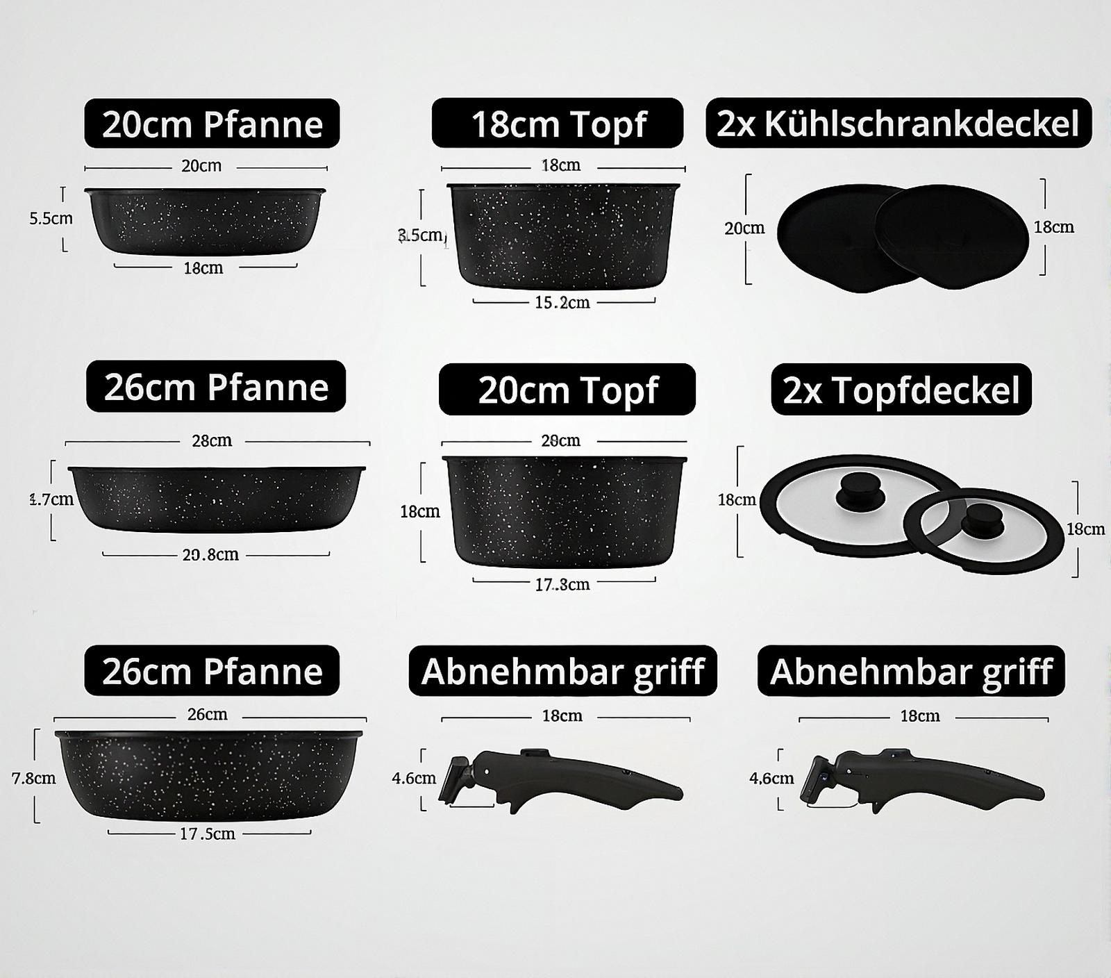 Unser umfassendes Set bietet Ihnen alles, was Sie benötigen, um köstliche Gerichte zuzubereiten und den verfügbaren Platz in Ihrer Küche maximal auszunutzen.